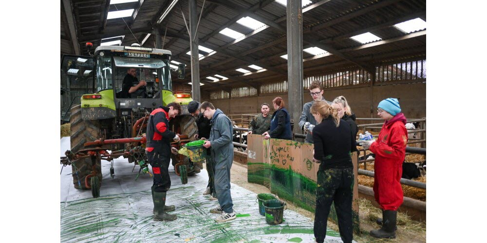 Depuis 2022, l’artiste Carole Nieder, accompagnée par la MFR de Stenay, s’est engagée à renouer le lien entre agriculture, territoire et création artistique. Le but : donner un regard neuf sur le travail agricole, valoriser le geste de la terre comme acte de création, et questionner les liens entre l’homme, l’animal, la terre et le paysage.